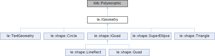 Implemented in le::shape::Circle, le::shape::Quad, le::shape::LineRect, le::shape::SuperEllipse, le::shape::Triangle, and le::TextGeometry.